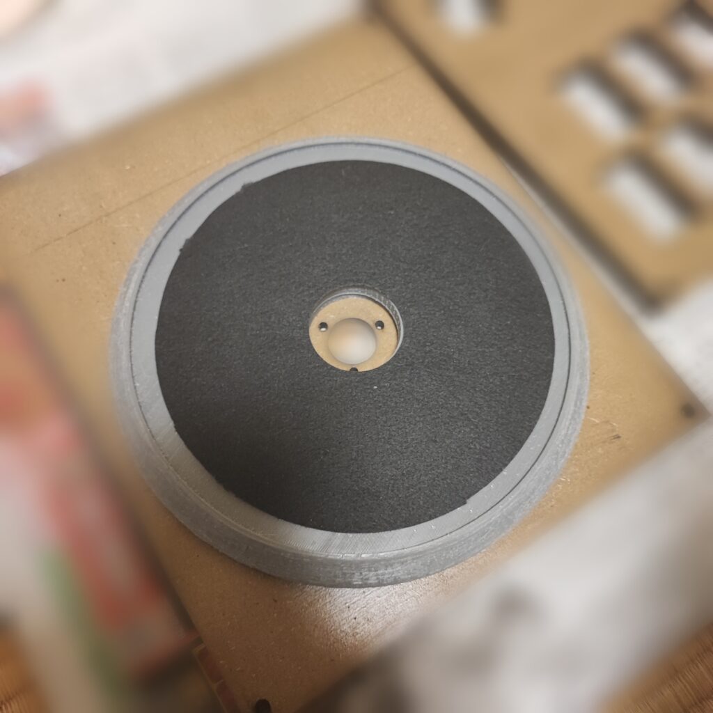 本当はスクラッチ部をフルサイズにしたかったのですが、自分の3Dプリンタの最大造形サイズを超えてしまうため諦めました。直径19cmなので、DAO FP7と同じぐらいのサイズ感になる予定です。